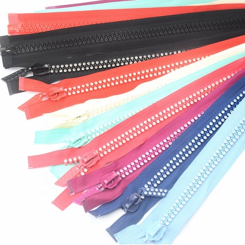 60cm שונה צבעים שרף ריינסטון Zip קרוב סוף ניילון בד רוכסן עבור מעיל מעיל בגדים