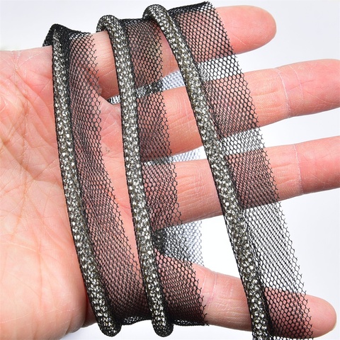 1 שורה ריינסטון לבן שחור תחרה לקצץ לתפור על זכוכית קריסטל שרשרת סרט לטקסטיל נעלי שקיות קישוט